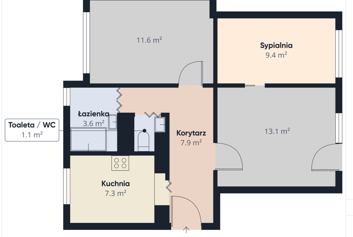 • łazienka oraz osobna toaleta, co znacząco poprawia funkcjonalność przy codziennym użytkowaniu,