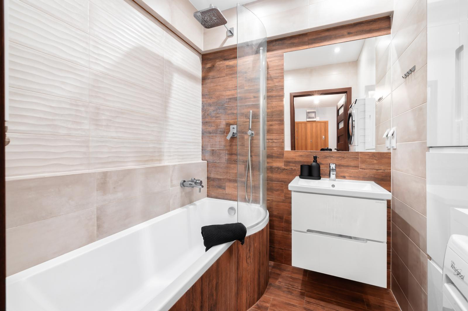 Mieszkanie jest jasne, dobrze doświetlone, wykończone w neutralnej, ponadczasowej kolorystyce. Kuchnia w pełnej zabudowie, wyposażona w sprzęt AGD. W łazience nowoczesna armatura i zabudowa meblowa.